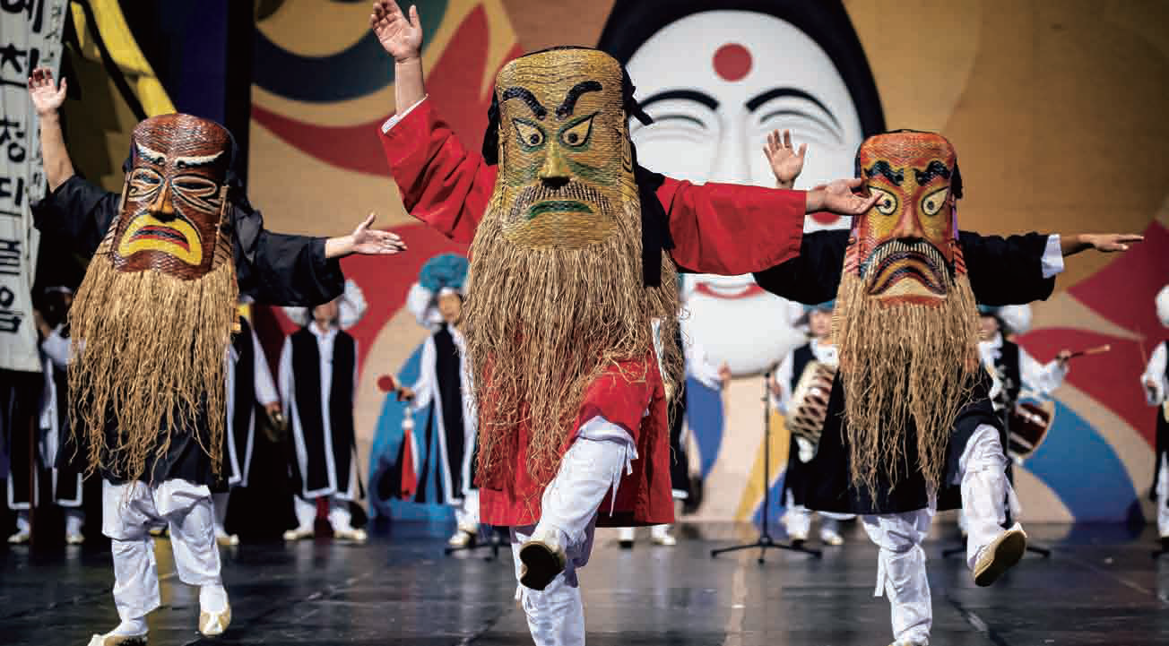 Talchum is a performing art that encompasses dance, music, and theatre. An ensemble of six